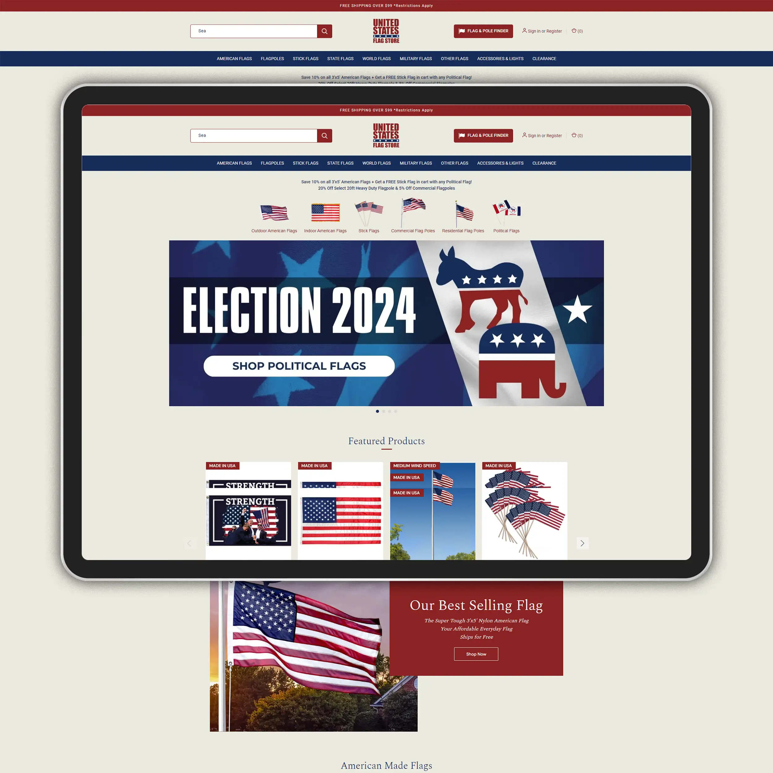 We proudly launched the newly redesigned United States Flag Store website—an established brand specializing in flags, flagpoles, and patriotic accessories. The new platform enhances the user experience with modern design, easier navigation, and improved customization tools for flag and pole selection.