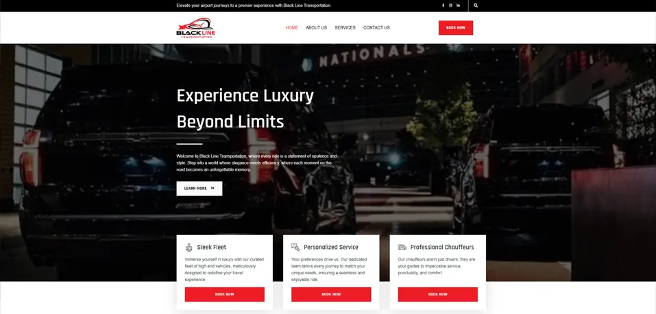 We developed a luxury transportation service website for Black Line Transportation, showcasing their high-end fleet, personalized services, and professional chauffeurs. The website offers seamless navigation, allowing clients to explore services and book premium rides for airport transfers, city tours, and corporate travel with ease. Designed with luxury and professionalism in mind, the site ensures a smooth and effortless user experience.