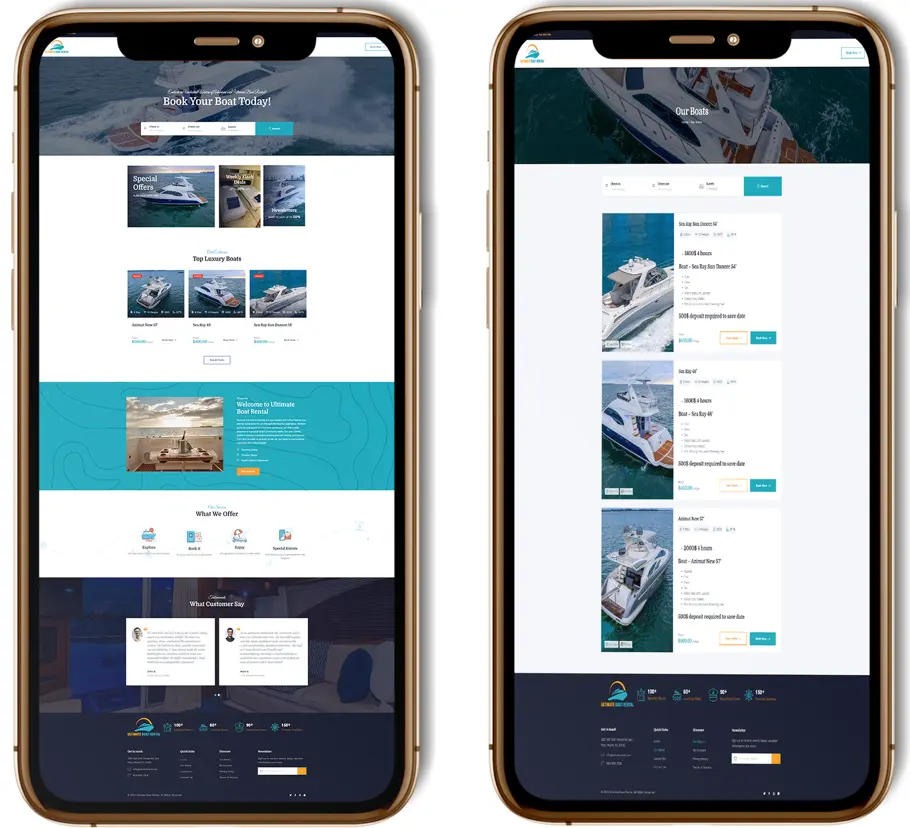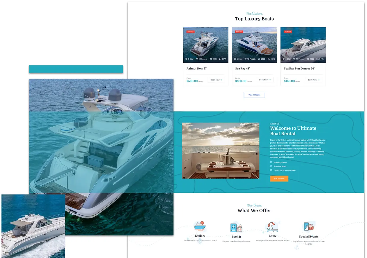Our approach to developing the Ultimate Boat Rental website was structured and strategic: Understanding Client Needs: We worked closely with the client to define key requirements, target audience preferences, and essential features. Designing a Premium User Experience: The website was built with a sleek, modern design, incorporating high-quality images and engaging content to highlight the luxury experience. Developing a Dynamic Booking System: We integrated a real-time booking engine, allowing customers to filter boats, check availability, and make reservations within minutes. Enhancing Customer Trust: We included customer testimonials, special offers, and high-quality images to build credibility and encourage bookings. Optimizing for Performance & SEO: The site was fully optimized for speed and SEO, ensuring fast loading times and high search engine visibility.